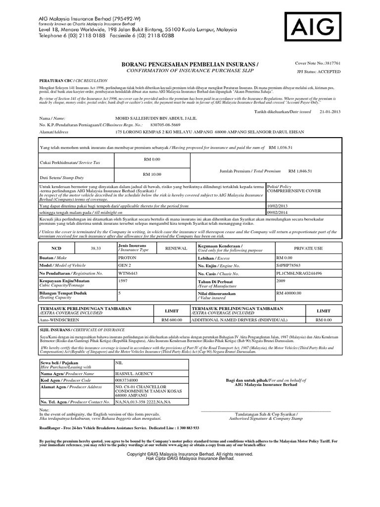 Berikut adalah cara untuk menyemak maklumat insuran kenderaan anda secara online sahaja. A cover note is a temporary document and will usually only last for 30. A cover note is a document issued by an insurance company that shows evidence of insurance coverage until they issue an insurance policy.
